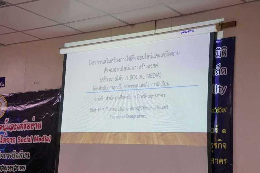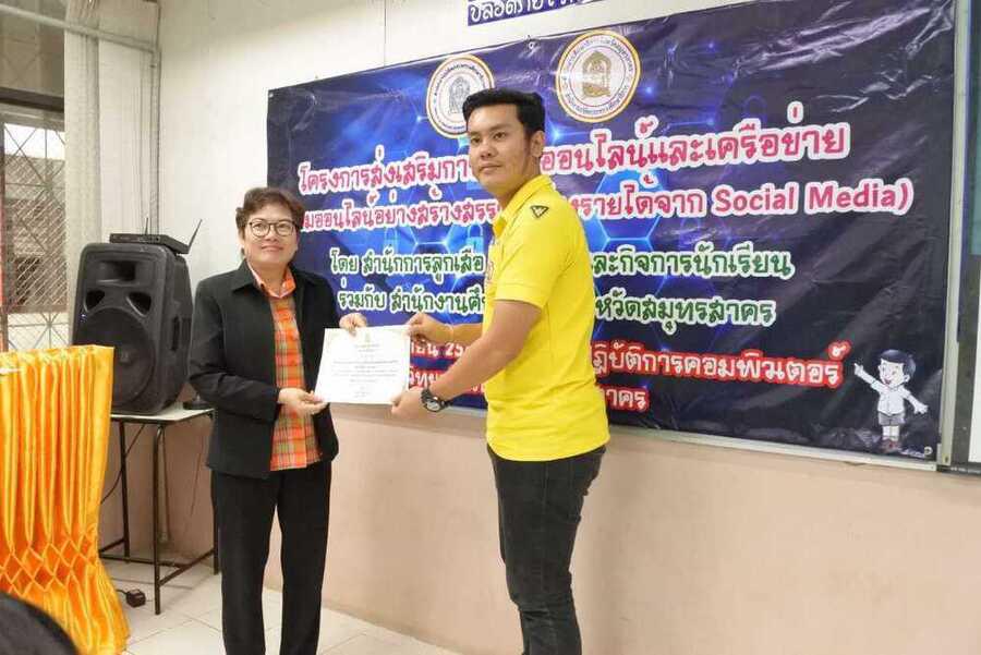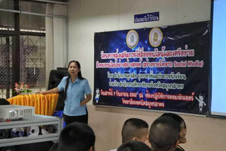 วันเสาร์ที่ 7 กันยายน 2562 โครงการส่งเสริมการใช้สื่อออนไลน์ และเครือข่ายออนไลน์อย่างสร้างสรรค์ ณห้องปฏิยัติการคอมพิวเตอร์ วิทยาลัยเทคนิคสมุทรสาคร S:0
