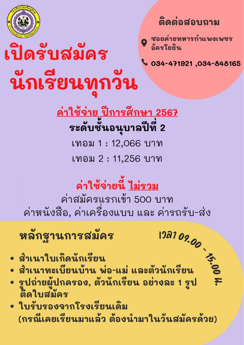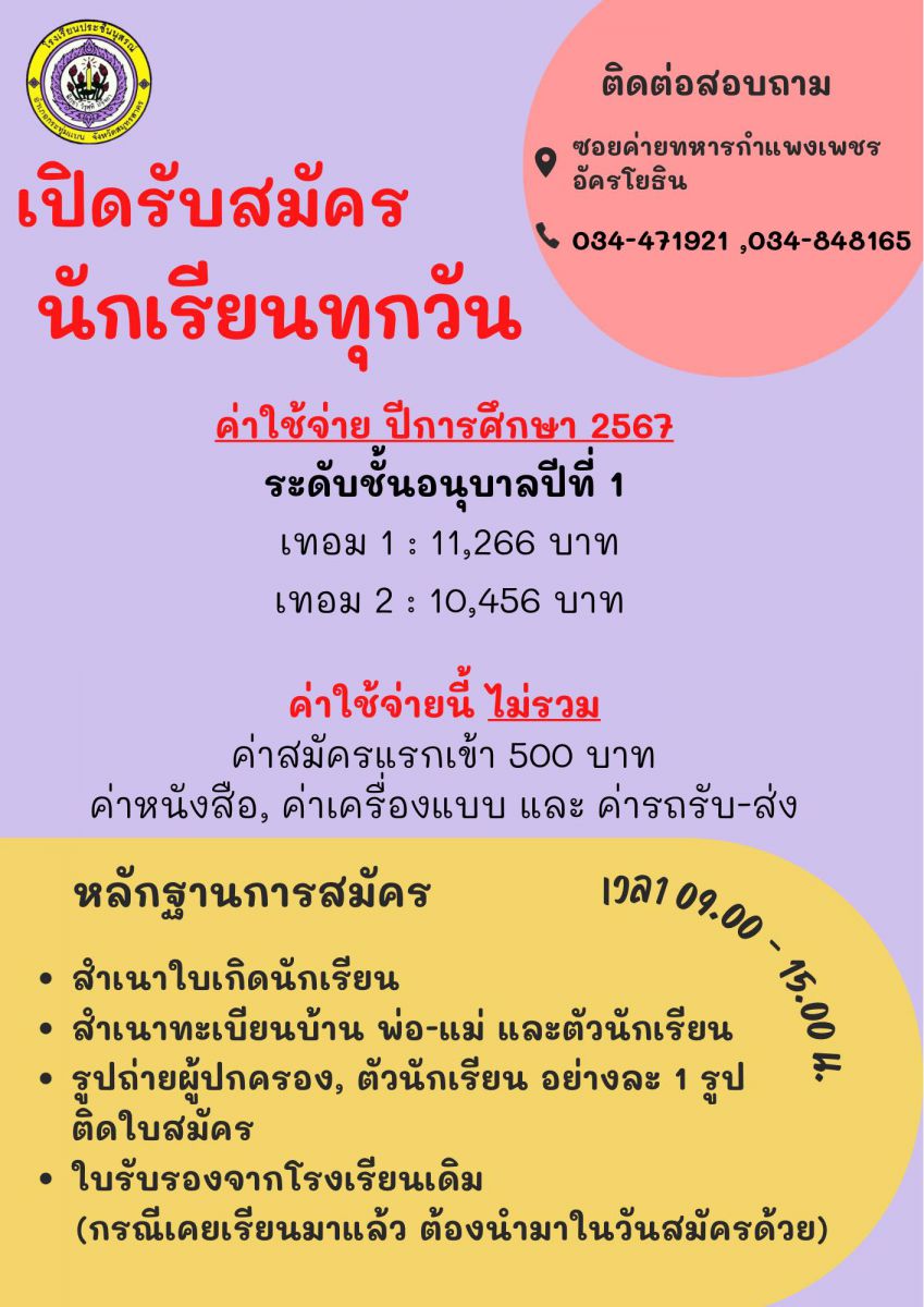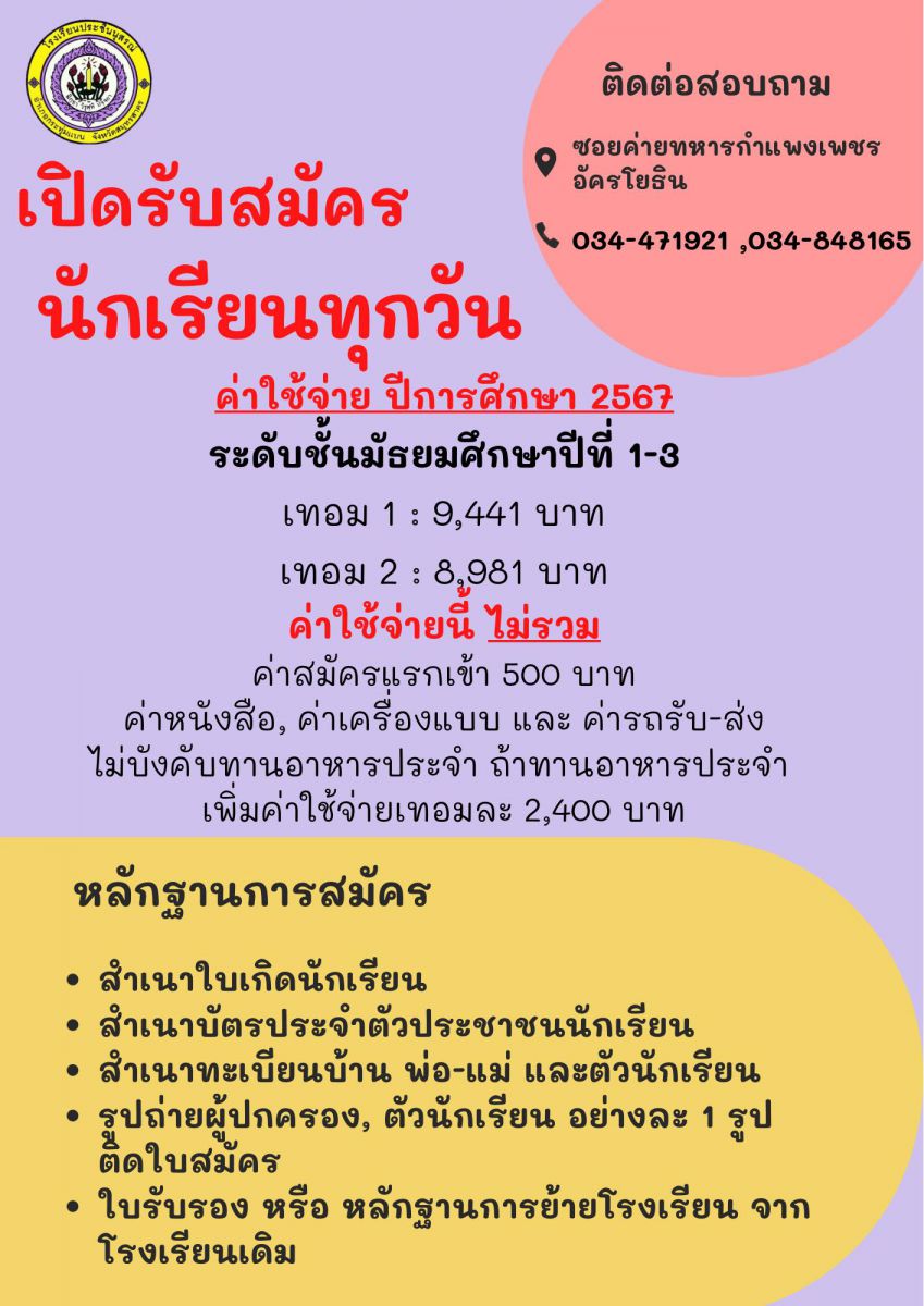 ระเบียบการสมัครเรียน