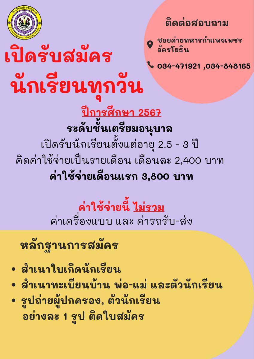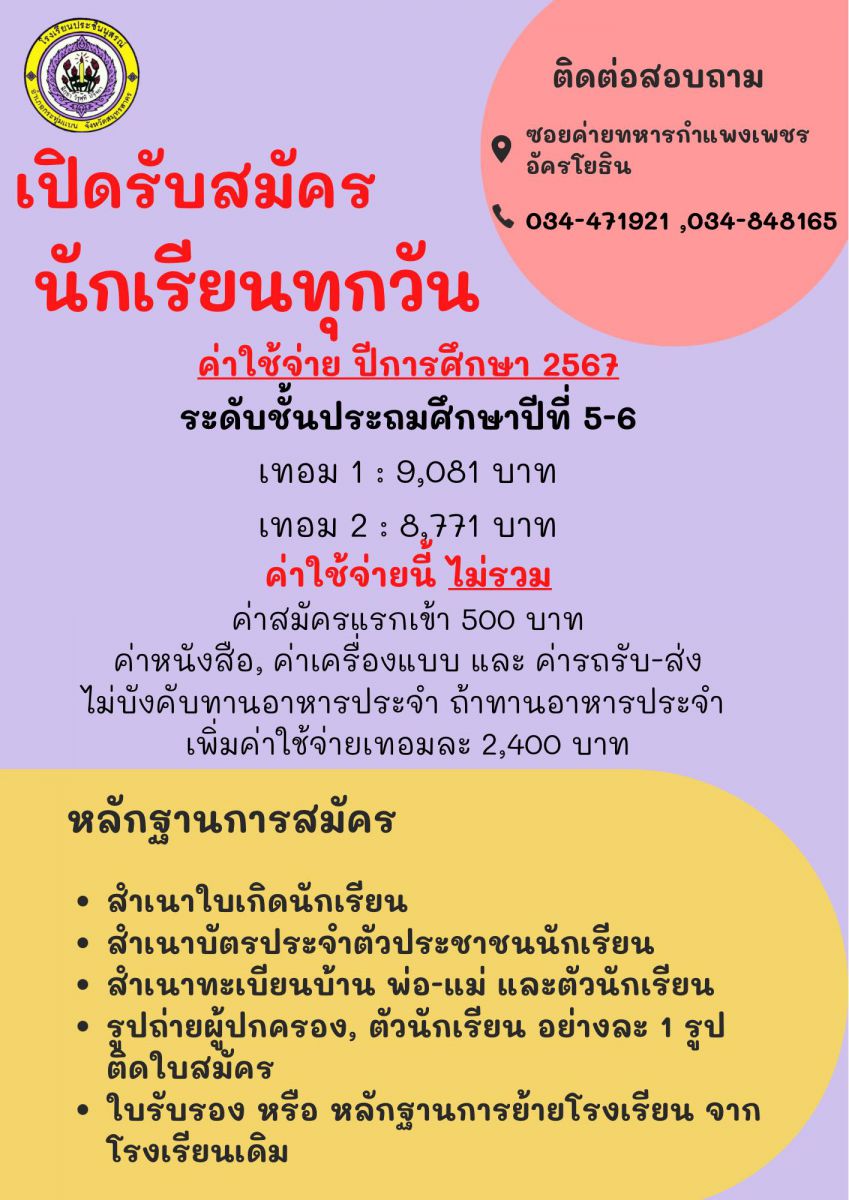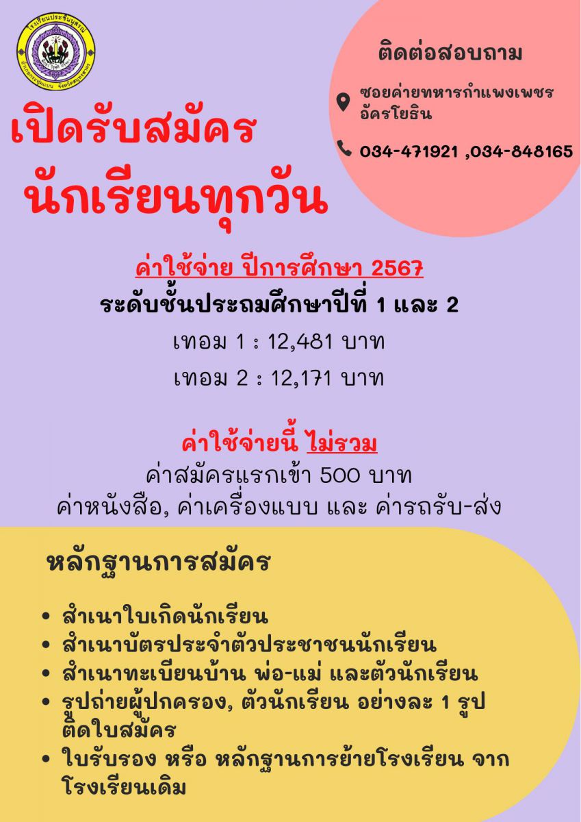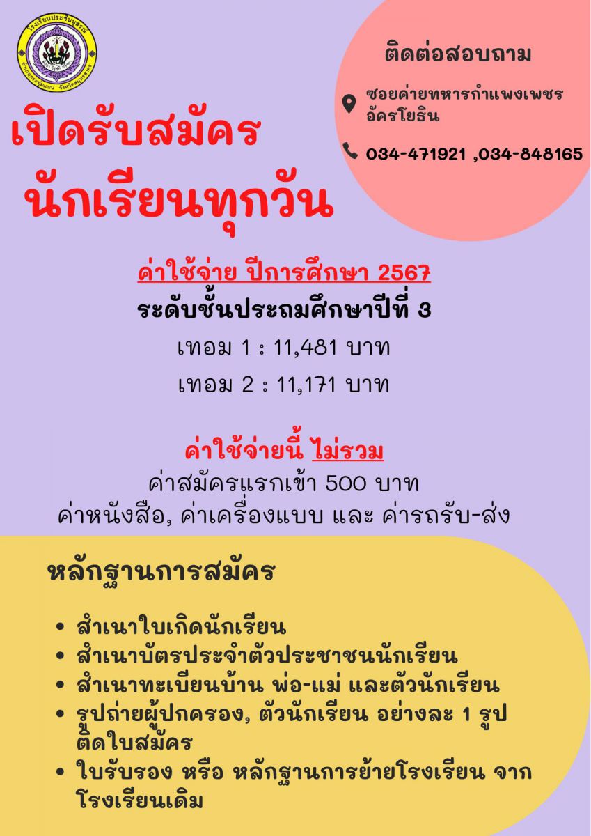 ระเบียบการสมัครเรียน